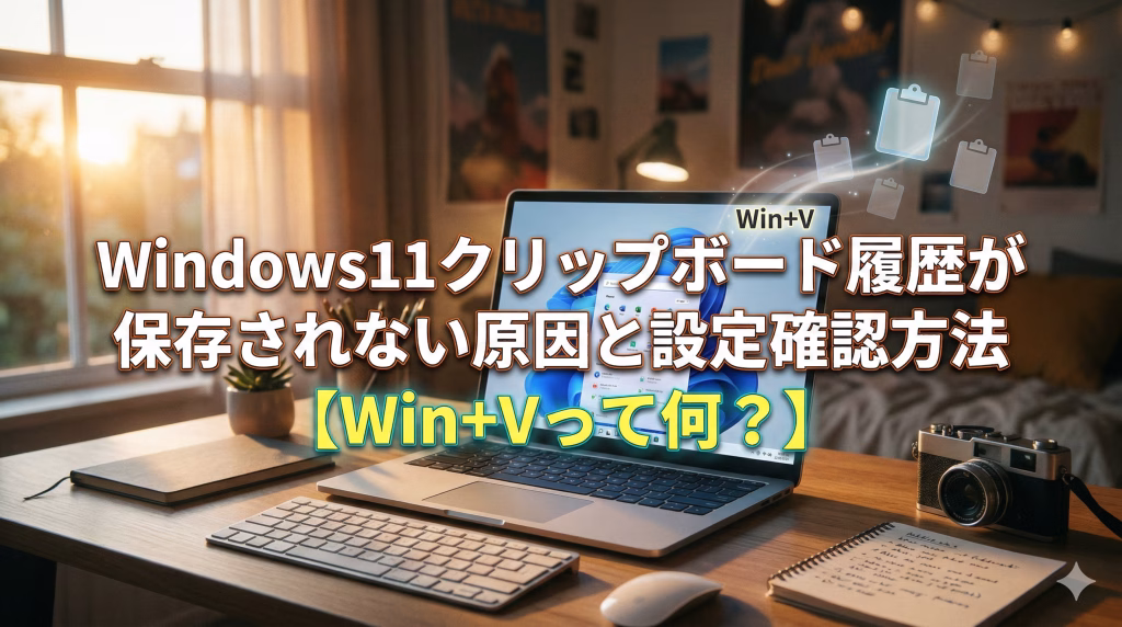 「Win+Vを押しても何も表示されない…」「コピーしたのに履歴が残らない」と困っていませんか?実はWindows11のクリップボード履歴は初期設定でオフになっています。この記事では、保存されない原因と設定のオン方法を初心者にも分かりやすく解説。ピン留め活用法もご紹介します。