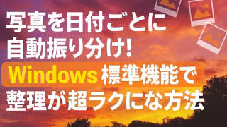 Tips 写真を日付ごとに自動振り分け!Windows標準機能で整理が超ラクになる方法 スマホやデジカメで撮った写真、パソコンに取り込んだはいいけど、どんどん増えていって「どこに何があるかわからない...」ってなってませんか?実は、Windowsには写真を撮影日ごとに自動で整理してくれる便利な機能が最初から入ってるんです。特別... 2025.11.20 0 Tips