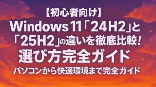 ニュース 【初心者向け】Windows11「24H2」と「25H2」の違いを徹底比較!選び方完全ガイド Windows11は毎年「H2」という大型アップデートが登場します。2024年版の「24H2」と、2025年版の「25H2」。名前だけ見ると似ていますが、中身にはちょっとした違いがあります。この記事では、両者の特徴をわかりやすく整理し、「ど... 2025.12.06 0 ニュース