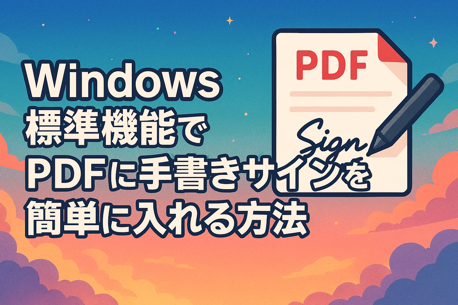 実は、Windowsに最初から入っている機能だけで、PDFに直接サインができるんです。特別なソフトをダウンロードする必要はありません。私も最初は半信半疑でしたが、一度やってみたら「なんだ、こんなに簡単だったのか」と拍子抜けしました。