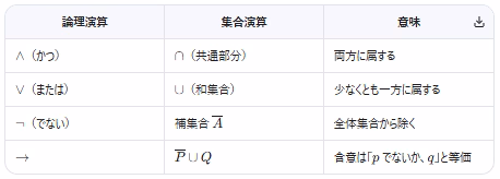 → 論理と集合は「同じ構造」! ベン図で可視化可能。
