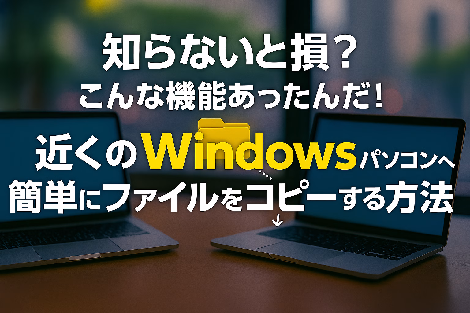 実は、Windows11とWindows10には「近距離共有」という超便利な機能があるんです。これを使えば、近くにあるパソコンに、無線でサクッとファイルを送れちゃいます。Wi-FiやBluetoothを使うので、ケーブルも何もいらないんですよ。