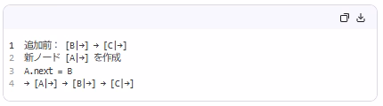 | 要素の追加 | ![]() 🔹 連結リストの先頭追加(図): ![]() |
