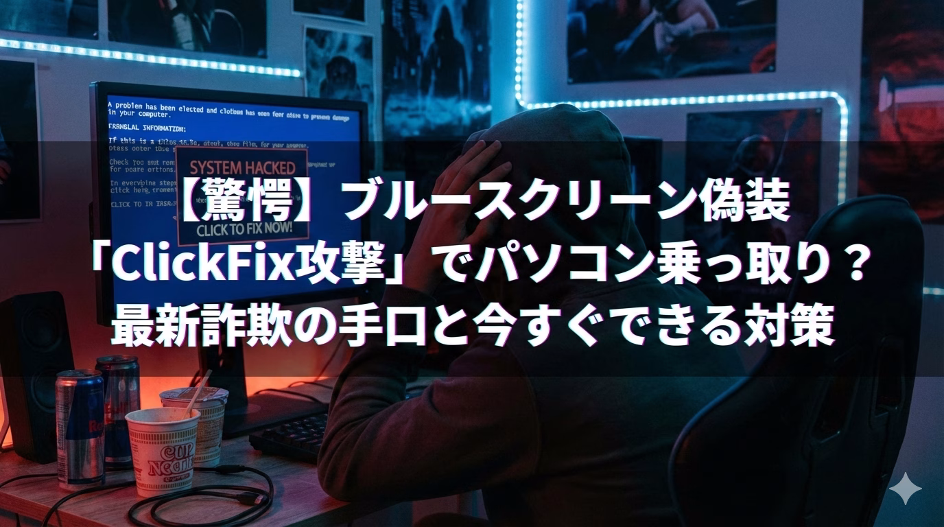 まず結論から言っちゃいますね。偽ブルースクリーンは、「ClickFix(クリックフィックス)」と呼ばれる詐欺の最新版です。本当にパソコンが壊れてるわけじゃないんです。