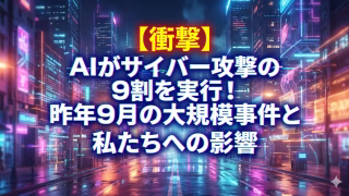 セキュリティ 【衝撃】AIがサイバー攻撃の9割を実行!昨年9月の大規模事件と私たちへの影響 パソコンやスマホを使って生活していると、「サイバー攻撃」って言葉をニュースでよく聞きますよね。でも、昨年(2025年)9月に起きた事件は、今までとは全然違うレベルだったんです。なんとAI(人工知能)が攻撃の80〜90%を自動で実行したってい... 2026.01.18 0 セキュリティ