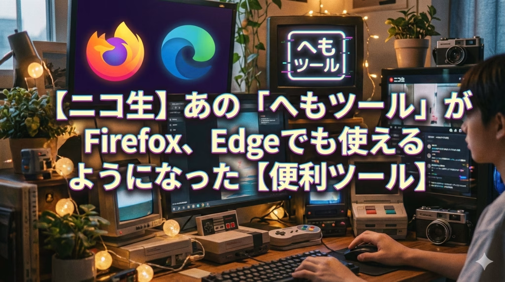 今回ざっくりご紹介するのは、Chrome専用のニコ生コメビュ機能搭載ツールである「へもツール」がFirefoxやMicrosoft Edgeでも使えるようになったよ!というお話です。