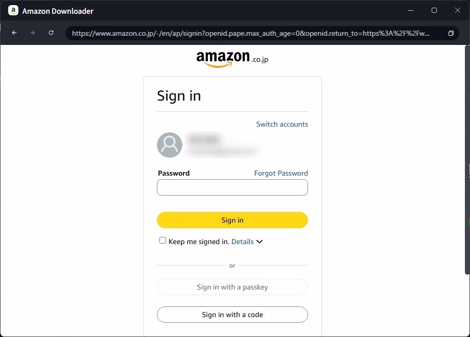 ソフトの中にブラウザみたいな画面が出てくるので、そこでAmazonのアカウントにログインします。