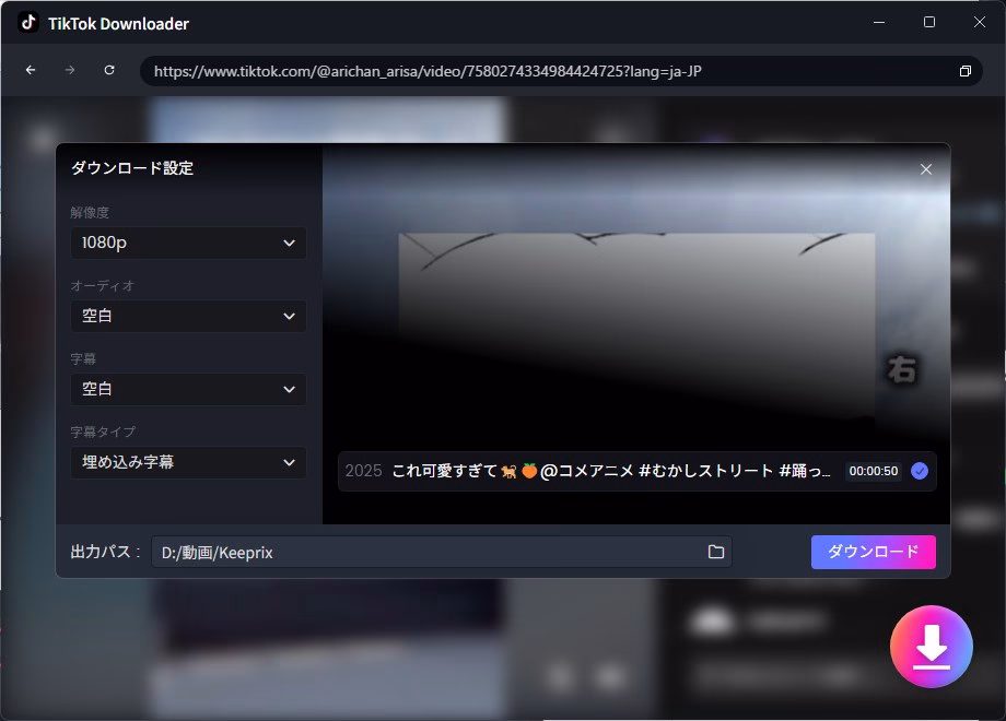 【2026年最新】Keeprix Video Downloaderを使ってTikTok動画をダウンロードしてみた