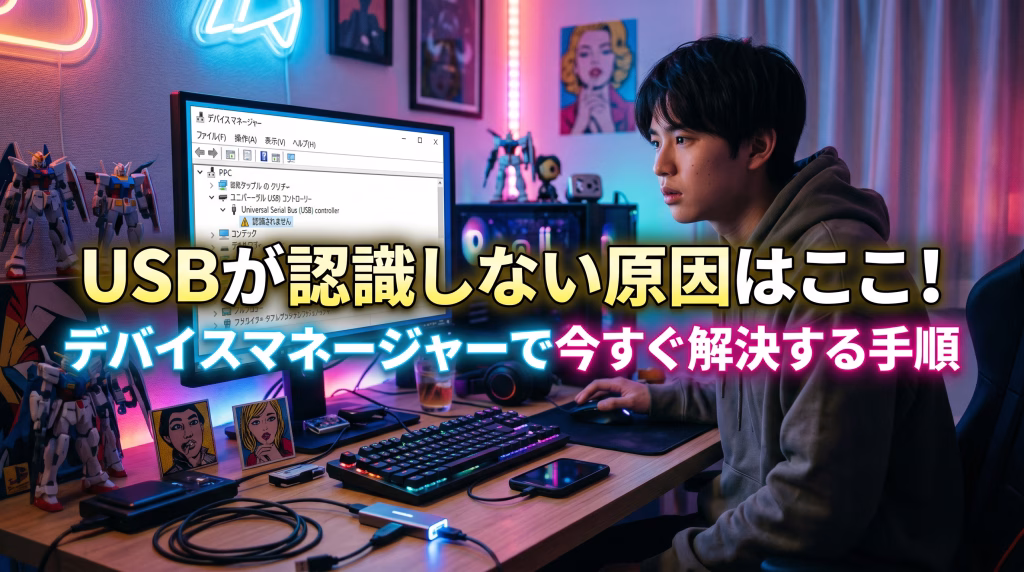 この記事では、Windowsに標準搭載されている「デバイスマネージャー」 を使って、USBが認識しない原因を特定し、今すぐ直す手順をわかりやすく解説します。難しい操作は一切ありません。順番通りに試してみてください。