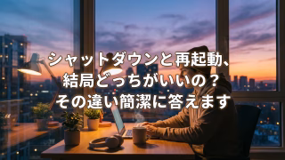 Tips シャットダウンと再起動、結局どっちがいいの?その違い簡潔に答えます 「シャットダウンしたのに直らない…」そんな経験ありませんか?実はWindowsのシャットダウンは完全に電源が切れていないんです!動作が重い、アプリが不安定…そのモヤモヤ、再起動1つで解決するかも。両者の違いと正しい使い分けを、パソコン初心者さんにもわかるようにやさしく解説します。もう迷いません! 2026.04.24 0 Tips