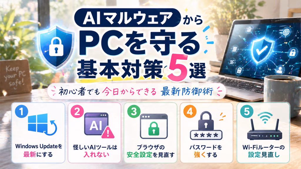 ズバリ、AI時代のPCを守るためにやるべき基本対策は次の5つだけです。
